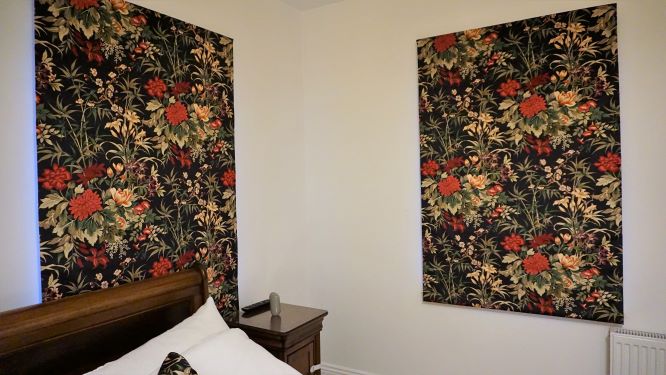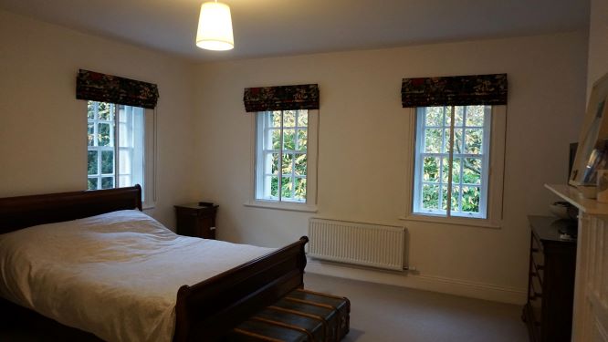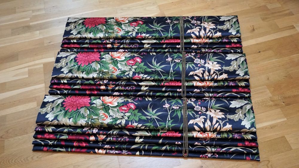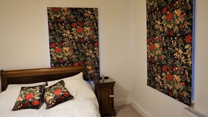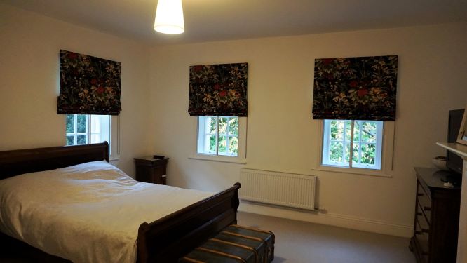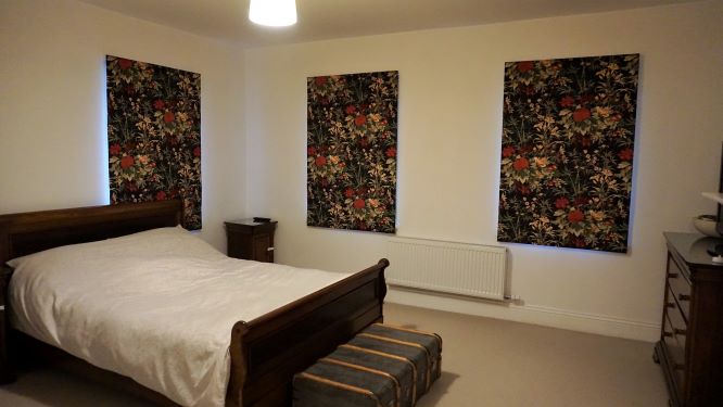 These exquisite blinds are made with voluptuous velvet fabric in a bold print by The Design Archives. There was enough fabric leftover following pattern matching to make some scatter cushions for the bed.