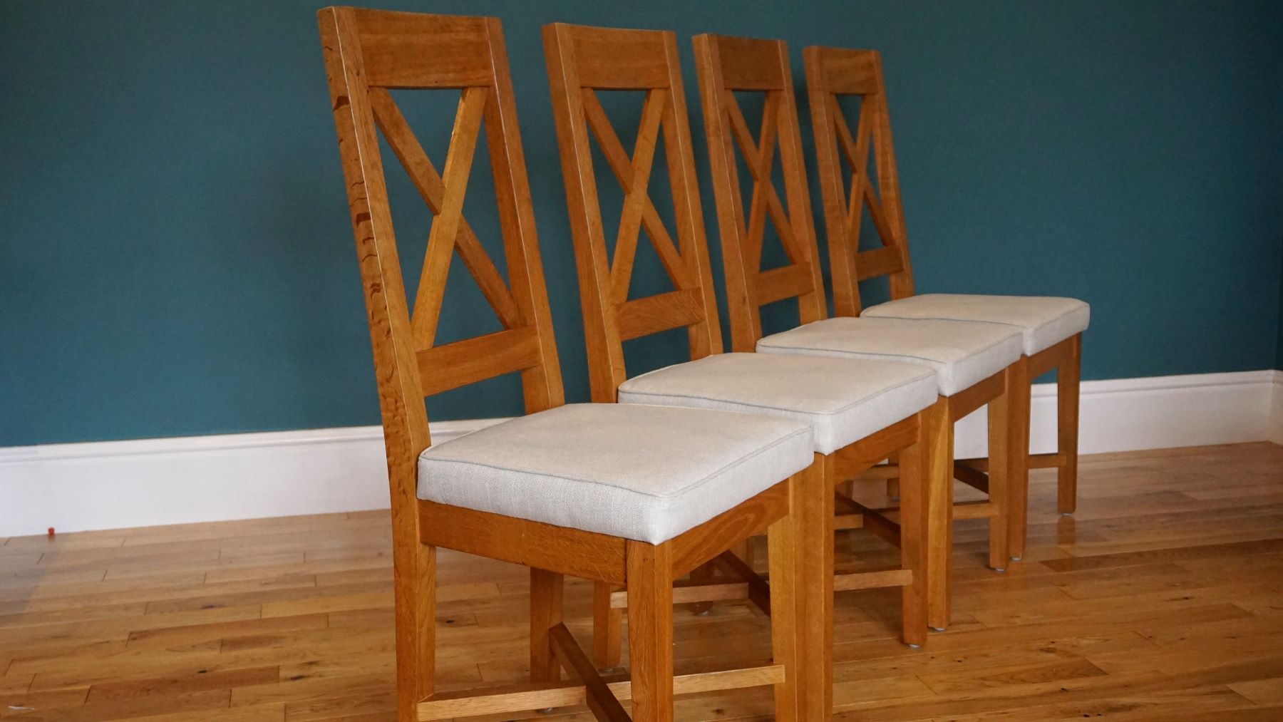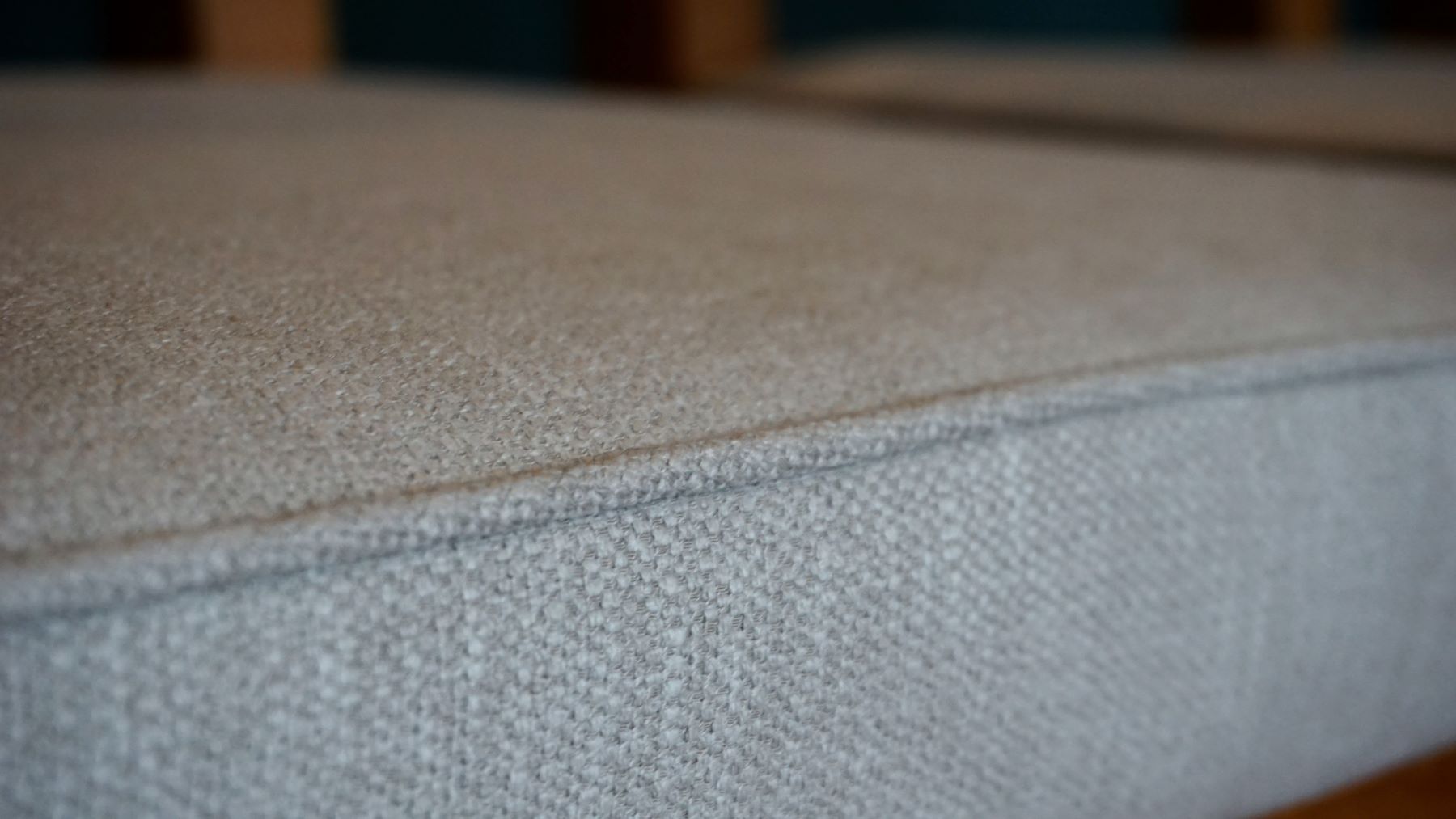 Good chairs can last a lifetime, although the covers and padding may need changing occasionally! A new layer of 2″ firm seating foam, a bit of lovely fabric and some finishing oil later and these dining chairs are good to go! The covers are Warwick Fabrics Scribble in Natural colour. This fabric is FR treated and has fibreguard technology making sticky fingers easy to deal with!